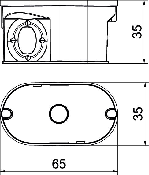 Puszka podtynkowa do układania pojedynczych kabli. Kształt owalny, do stosowania w murze o głębokości zabudowy co najmniej 35 mm.