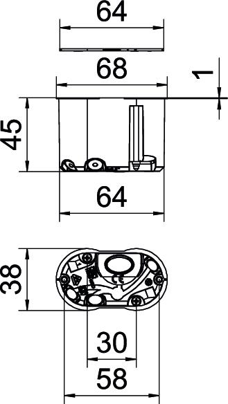 Puszka do ścian płytowych, do montażu kinkietów lub głośników. Z pokrywą.