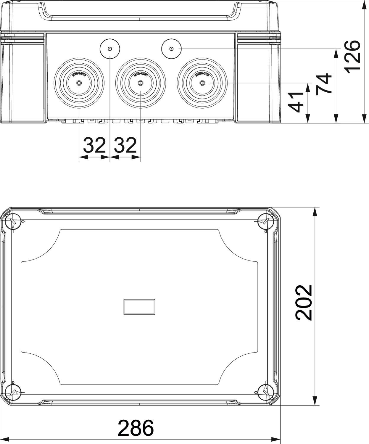 Junction box with hat profile rail for the connection of cables and lines indoors and in outdoor areas. Rectangular design with knock-out entries. Suitable for wall and ceiling mounting with the option to fasten outside, inside or to mount via the corner domes. Particularly impact resistant with IK08. Transparent cover with quick lock, sealable. Made from halogen-free and UV-resistant materials.