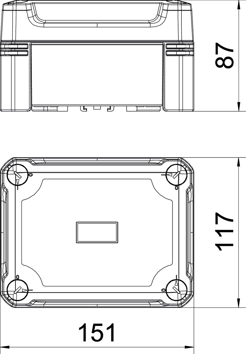 Junction box for the connection of cables and lines indoors and in outdoor areas. Rectangular design without entries. Suitable for wall and ceiling mounting with the option to fasten outside, inside or to mount via the corner domes. Particularly impact resistant with IK08. Transparent cover with quick lock, sealable. Made from halogen-free and UV-resistant materials.