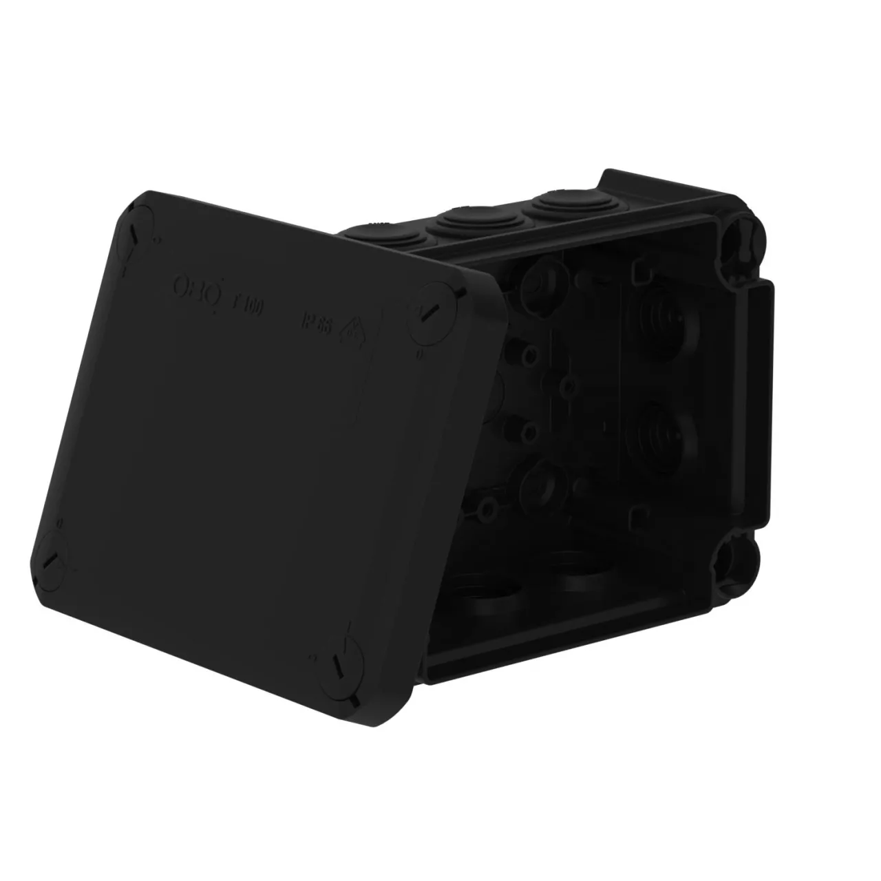 Puszka rozgałęźna do łączenia kabli i przewodów w pomieszczeniach oraz na zewnątrz. Prostokątny konstrukcja z wtykanymi uszczelkami po bokach i wybijanymi otworami w dnie. Nadaje się do montażu na ścianie i suficie oraz na innych konstrukcjach montażowych. Z możliwością zamocowania od wewnątrz puszki lub poprzez kopuły narożne. Pokrywa zatrzaskiwana, uszczelniona. Wykonane z materiałów bezhalogenowych i odpornych na promieniowanie UV.