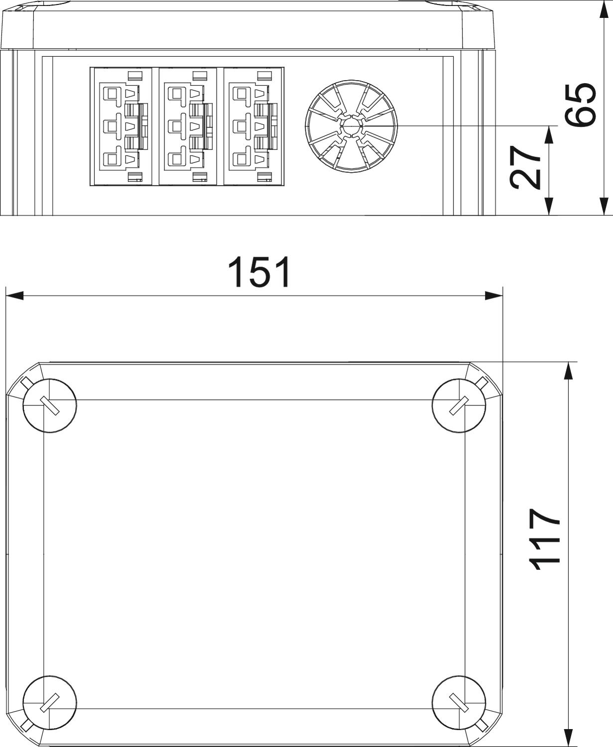 Junction box according to DIN EN 60670. Flame-resistant to DIN EN 60695/2/11, test temperature 650 °C.
