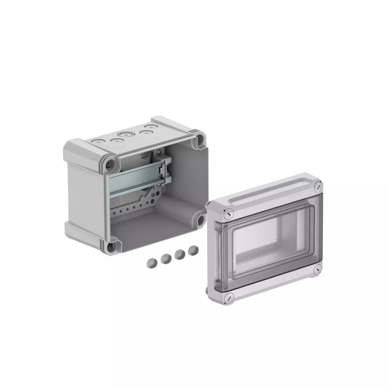 Istnieją trzy wersje wyposażenia: z zaciskami śrubowymi, z zaciskami wtykowymi i bez zacisków. Wszystkie rozmiary i wersje wyposażenia są dostępne w dwóch materiałach. Wszystkie rozdzielnice są dostarczane ze wstępnie zmontowaną szyną montażową 35 mm.