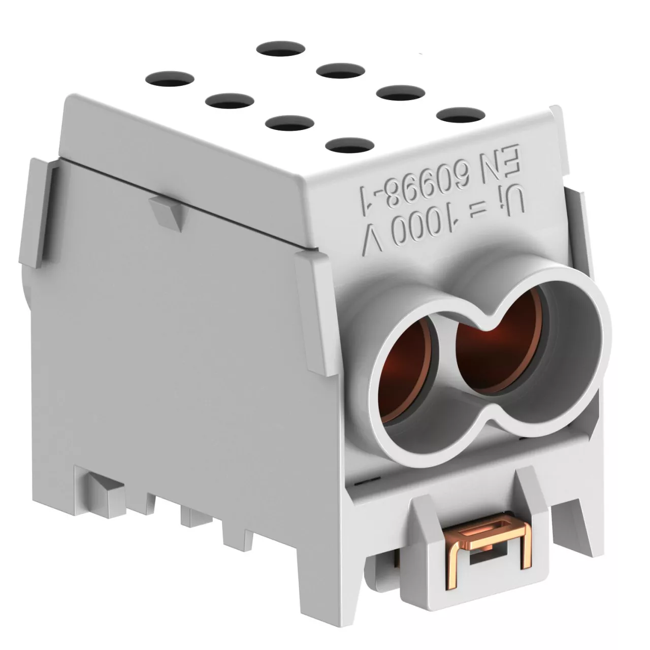 1-biegunowy zacisk odgałęzienia linii głównej 4 x 70 mm² przekrój przyłącza przewodu na biegun. Z 2 śrubami na punkt mocowania zapewniający pewny docisk. Szybkie mocowanie o wysokiej wytrzymałości wykonane z ocynkowanej blachy stalowej do łatwego montażu na szynach montażowych.