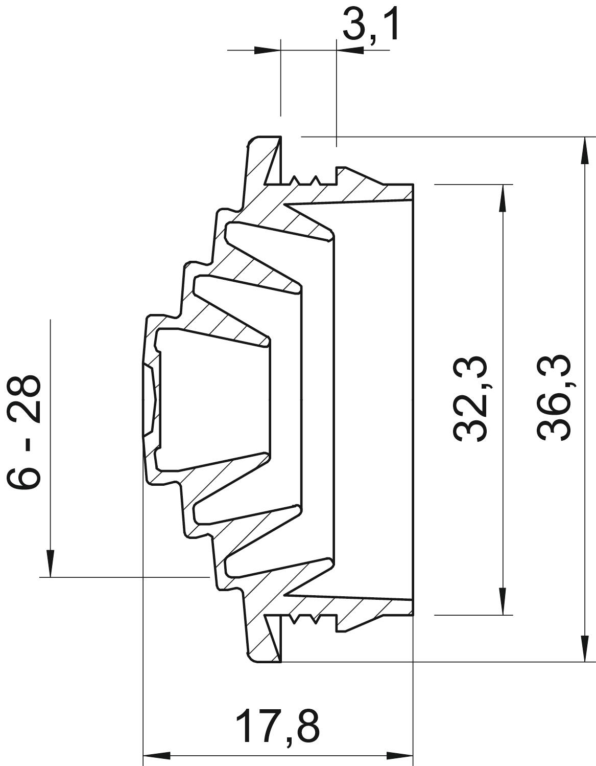 Poprzez stopniowe odcinanie można dopasować go do danej średnicy kabla.