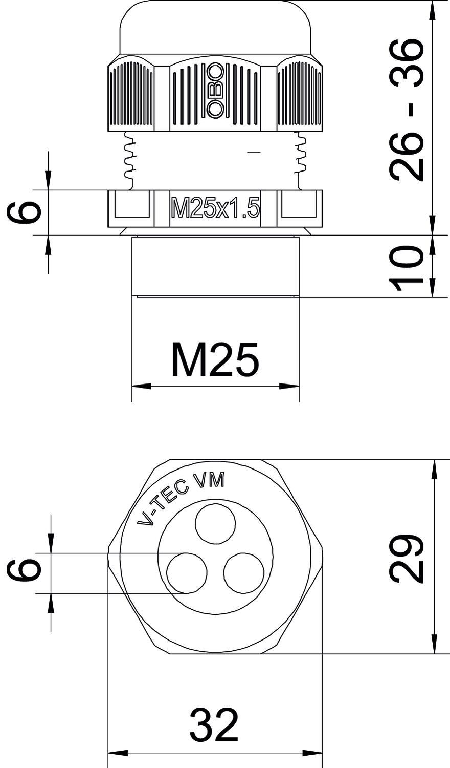 V-TEC VM25 3x6 Dławik kablowy z wkładką wielootworową
