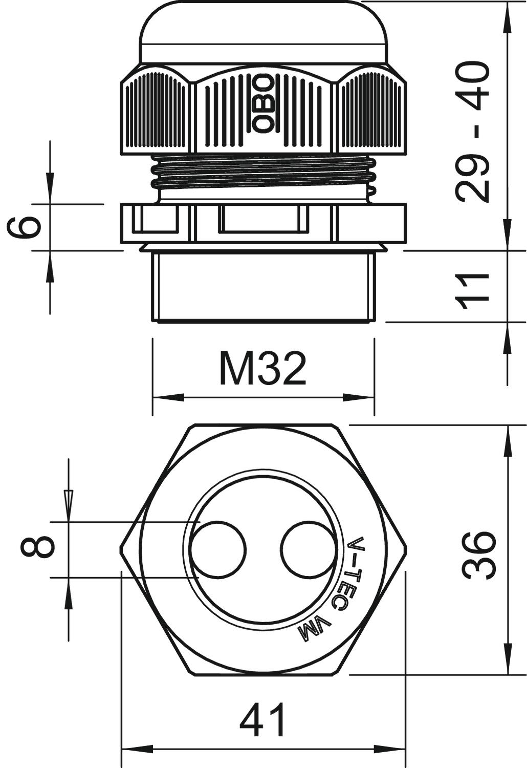 V-TEC VM32 2x8 Dławik kablowy z wkładką wielootworową