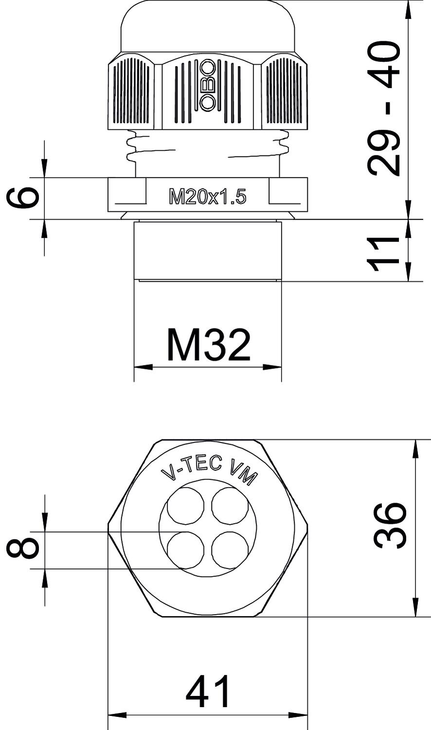 V-TEC VM32 4x8 Dławik kablowy z wkładką wielootworową