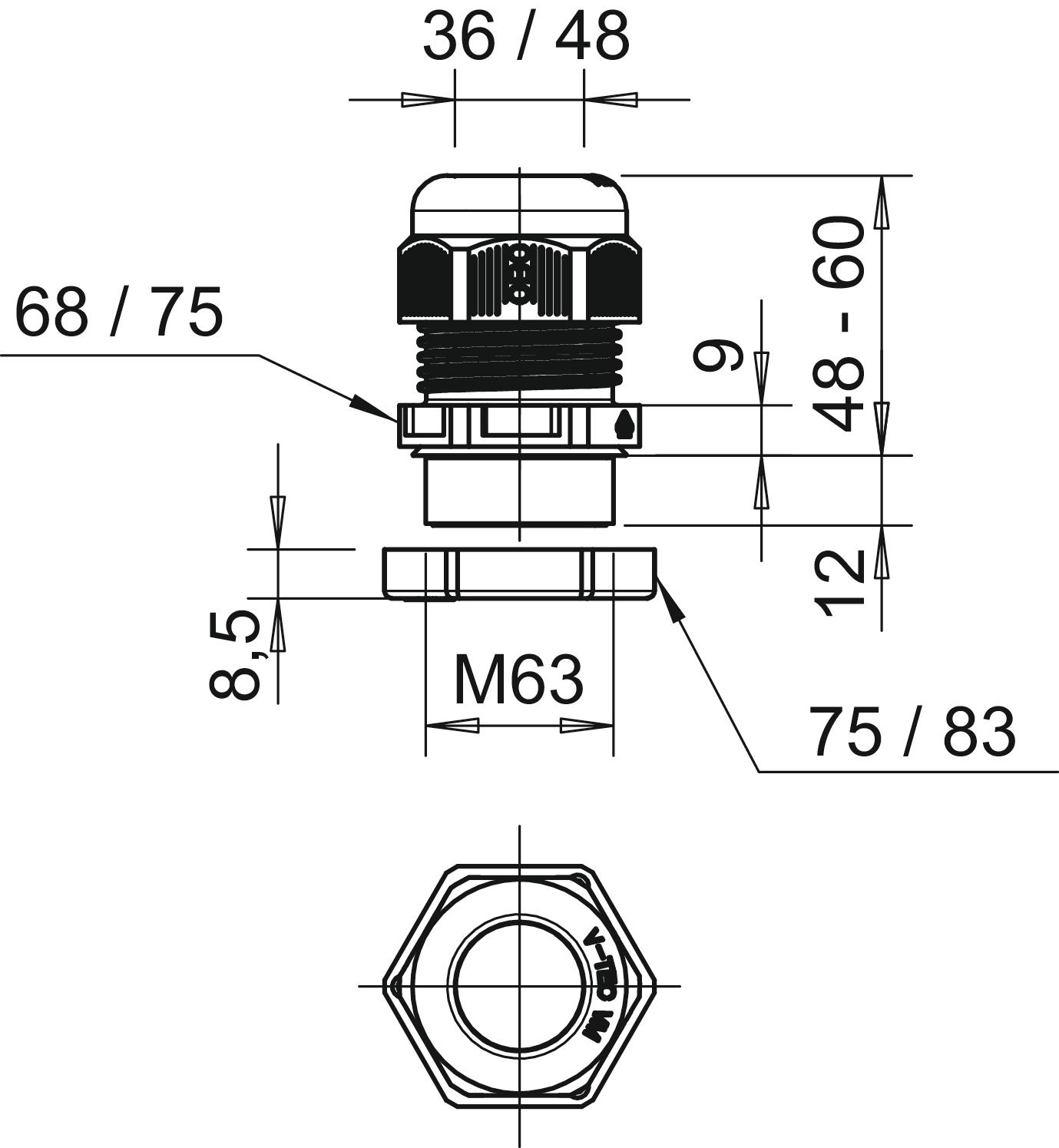 V-TEC VM63+ LGR Dławik kablowy z przeciwnakrętką