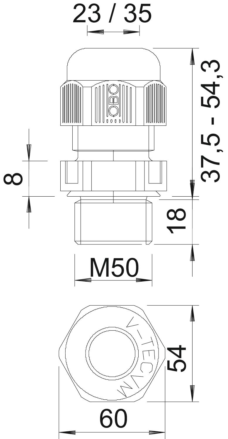 V-TEC VM L50 SGR Dławik kablowy metryczny długi