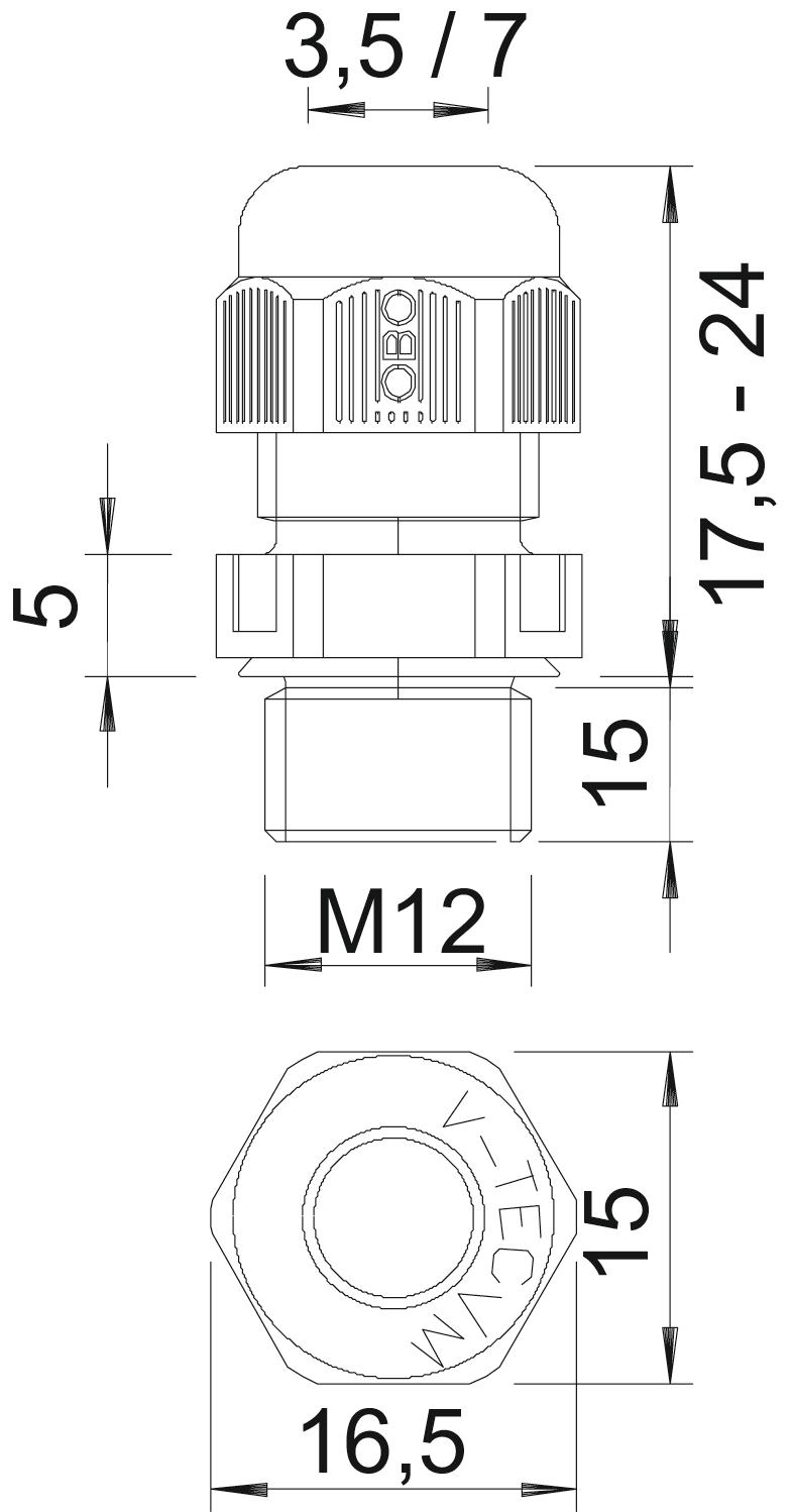 V-TEC VM L12 LGR Dławik kablowy metryczny długi