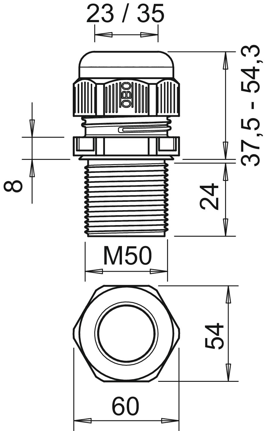 V-TEC VM LL50 SW Dławik kablowy długi gwint 24mm