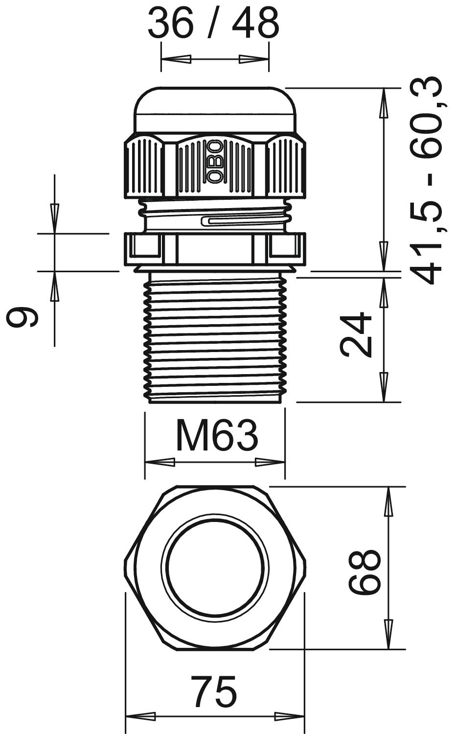 | Dławnica kablowa podzielna: |