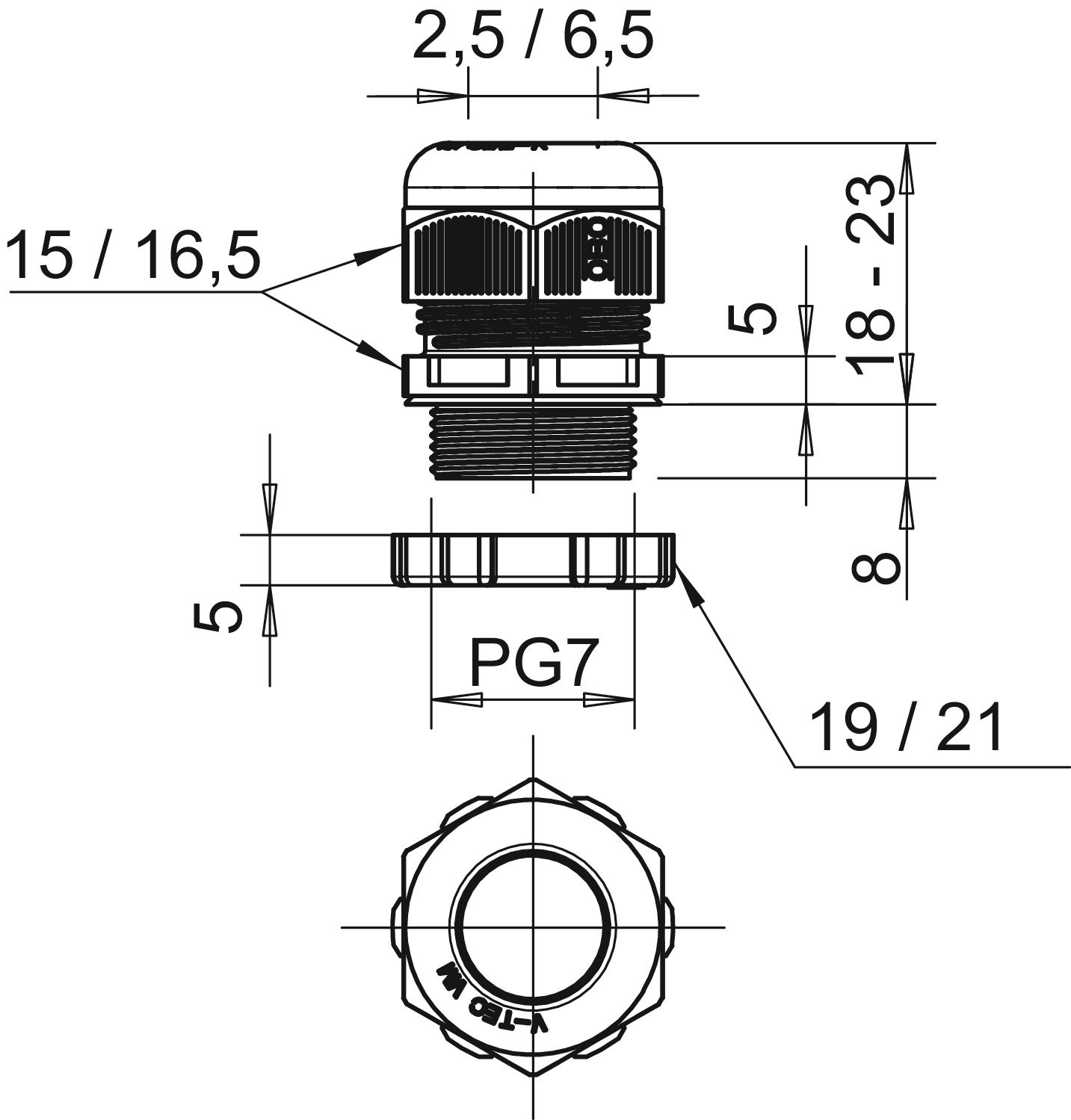 V-TEC PG7+ LGR Dławik kablowy z przeciwnakrętką