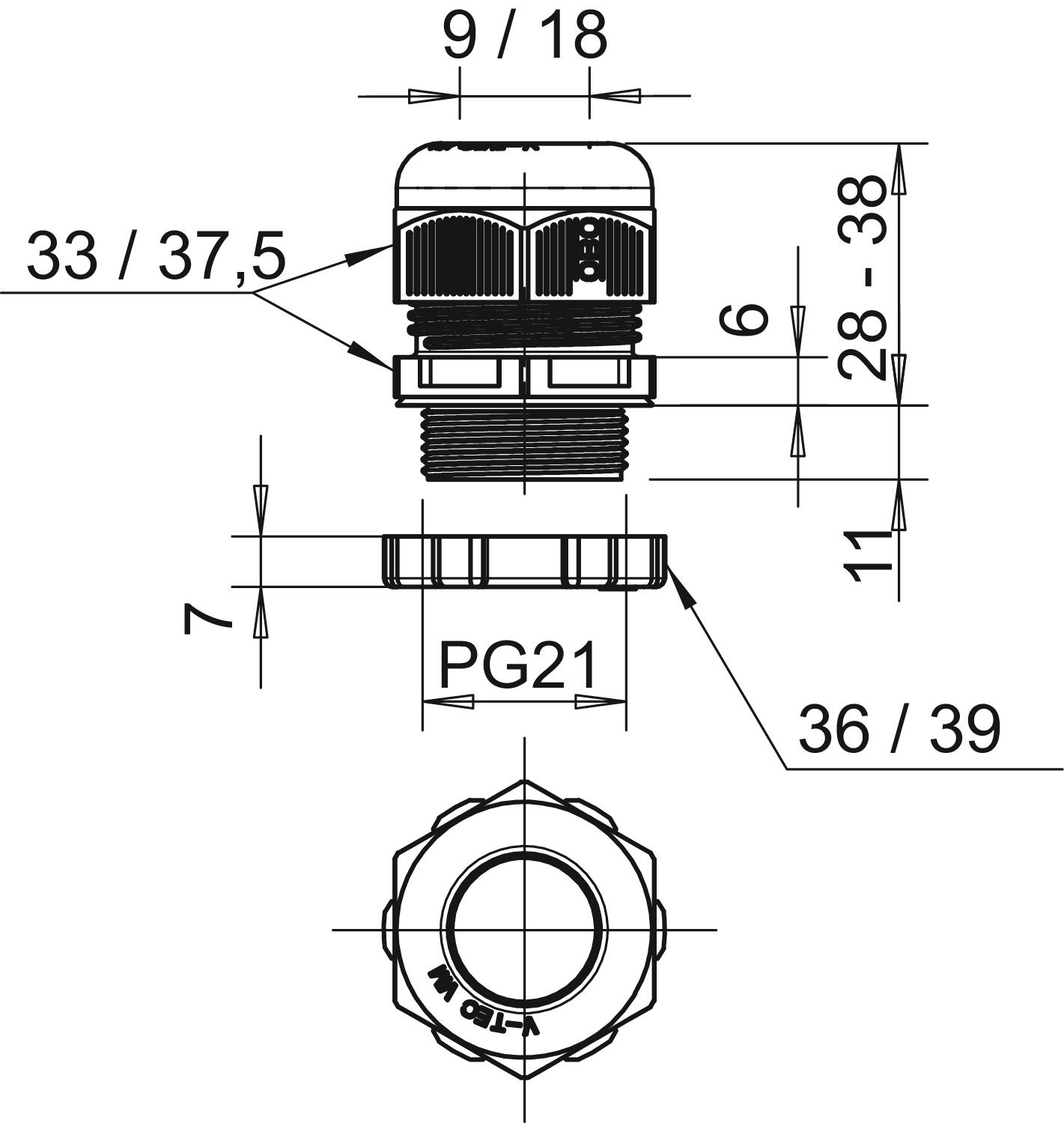 V-TEC PG21+ LGR Dławik kablowy z przeciwnakrętką