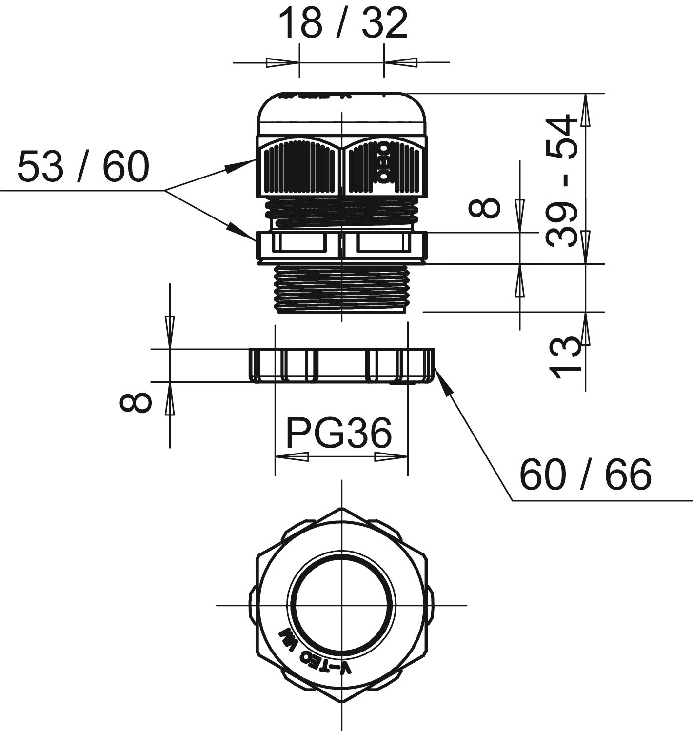 V-TEC PG36+ LGR Dławik kablowy z przeciwnakrętką