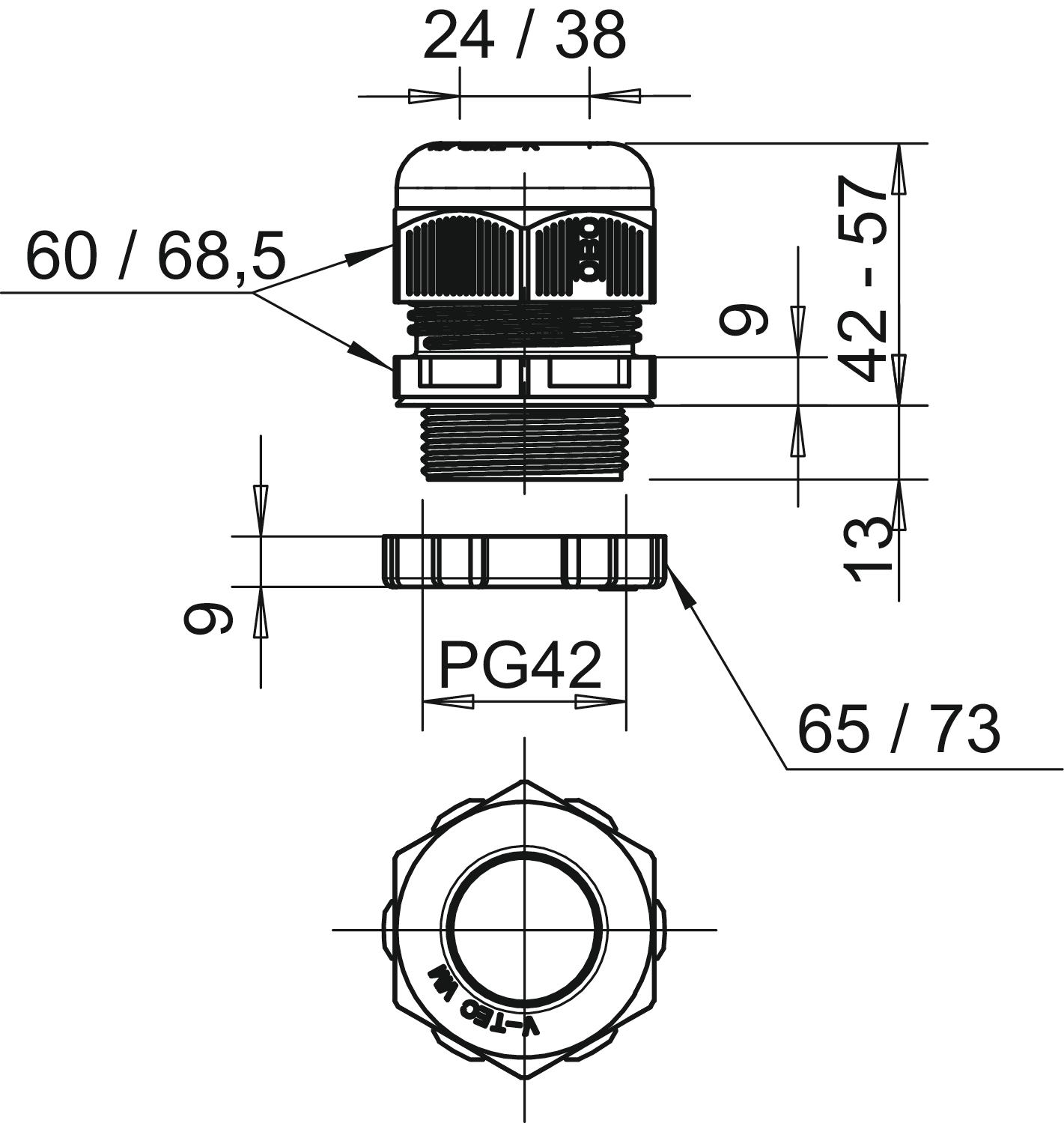 V-TEC PG42+ LGR Dławik kablowy z przeciwnakrętką