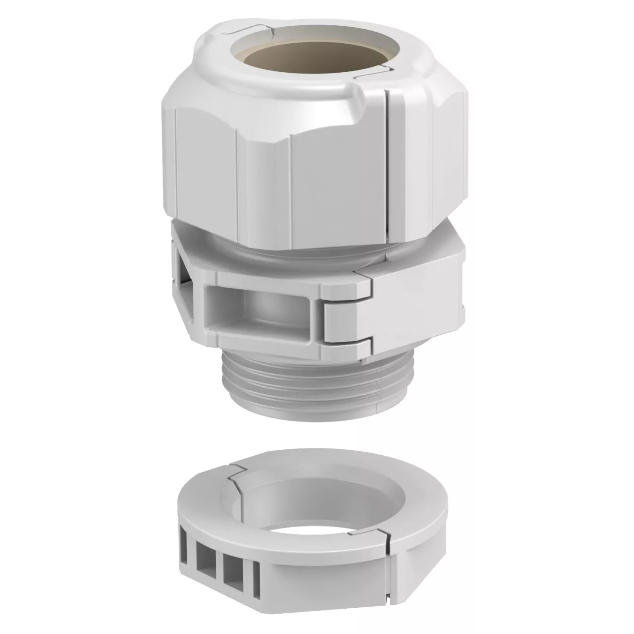 Rozdzielny dławik kablowy V-TEC TB .., podobnie jak wszystkie dławiki V-TEC, zapewnia bezpieczne uszczelnienie kabli. Montaż dławika rozdzielnego jest możliwy na podłączonych już przewodach.