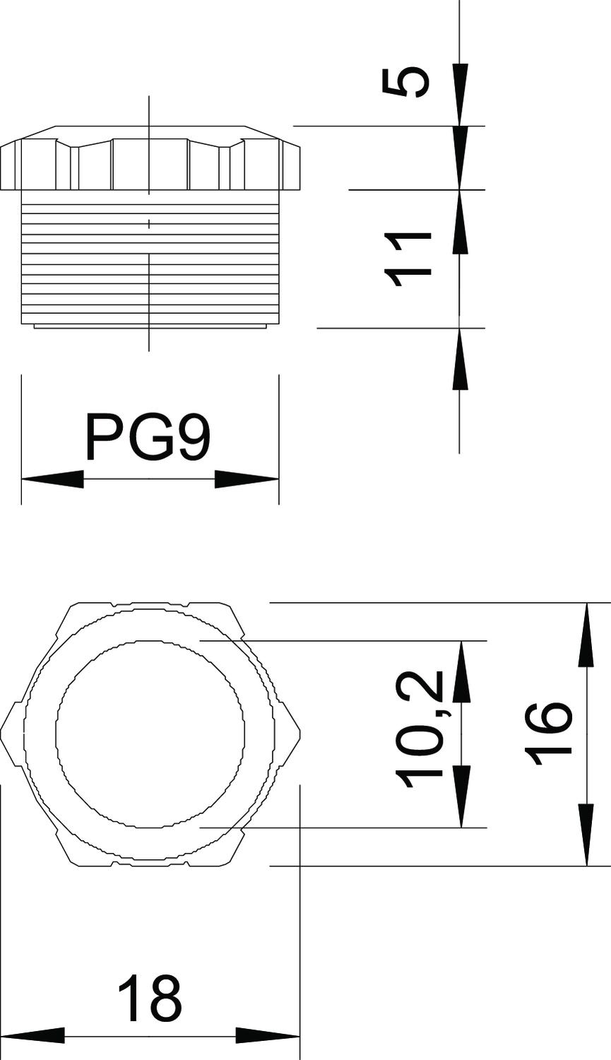 Tuleja dociskowa wg normy DIN 46320 (część 1), gwint PG wg normy DIN 40430.