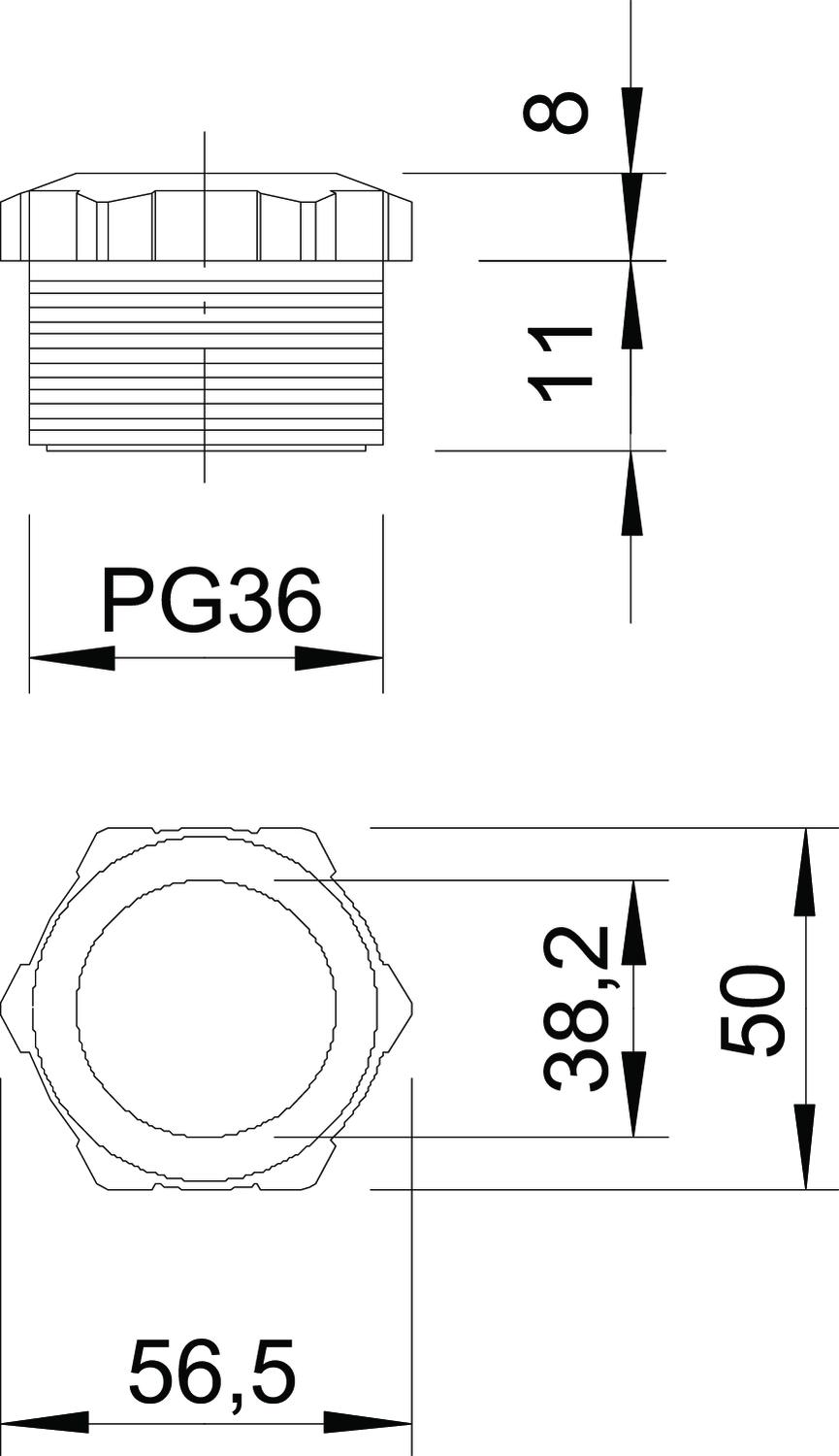 Tuleja dociskowa wg normy DIN 46320 (część 1), gwint PG wg normy DIN 40430.