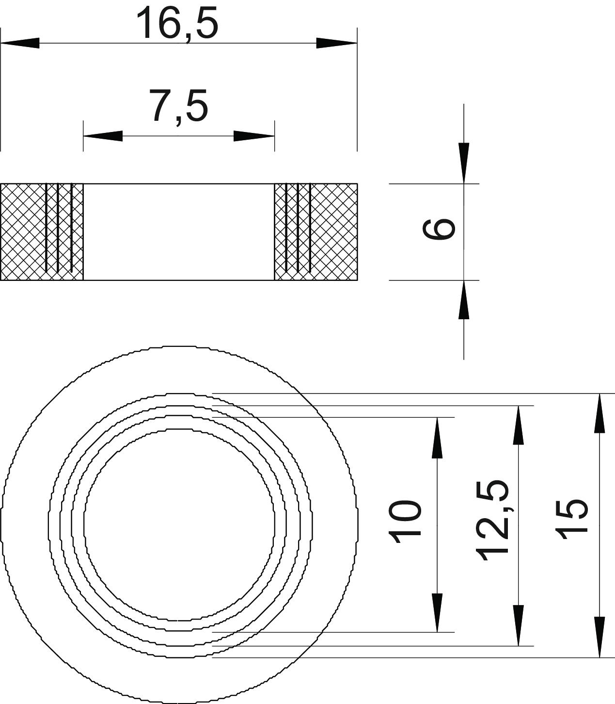 Pierścień nacinany z gumy (wycinany pierścień uszczelniający) według DIN 46320 do dławików kablowych stożkowych.