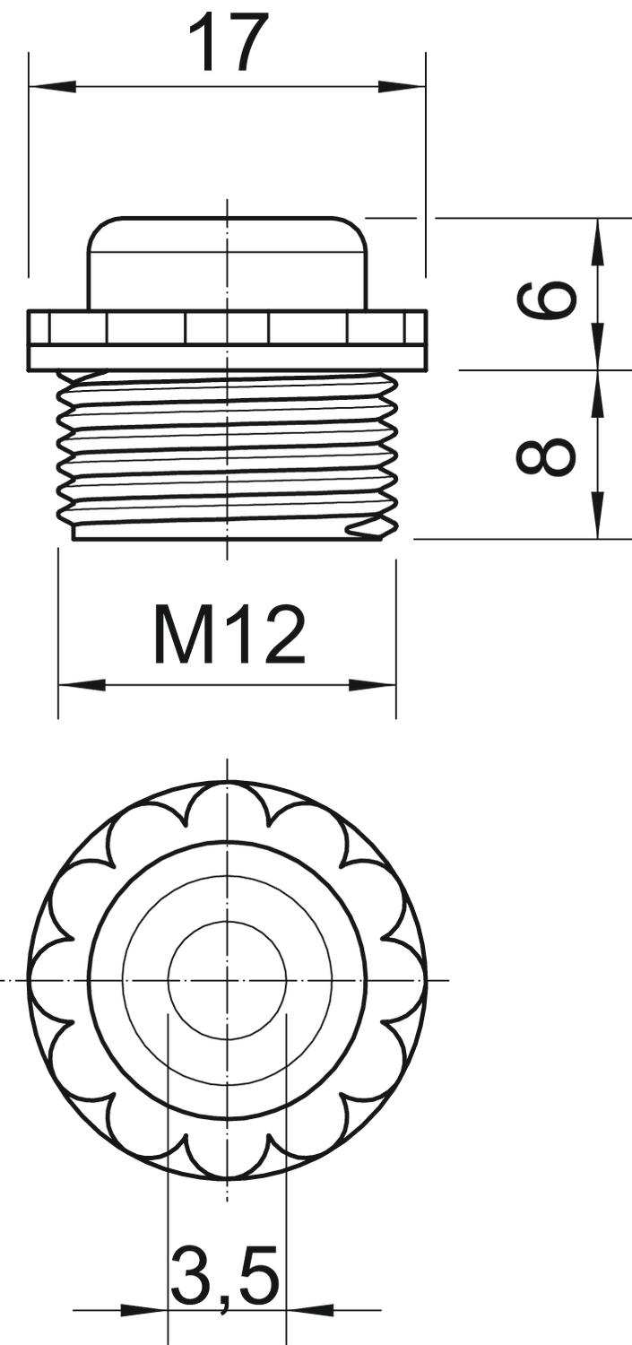 Z membraną przebiciową, otwór D jest wytłoczony, ale zamknięty.Uszczelka do wkręcenia w gwint metryczny według IEC 423.