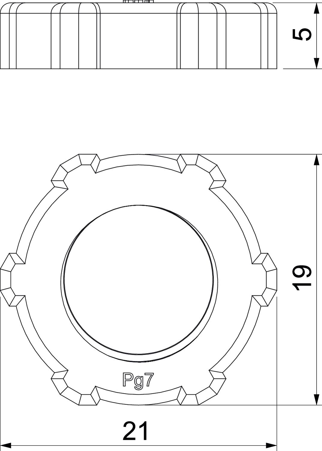 Przeciwnakrętka wg normy DIN 46320 z gwintem PG wg normy DIN 40430.
