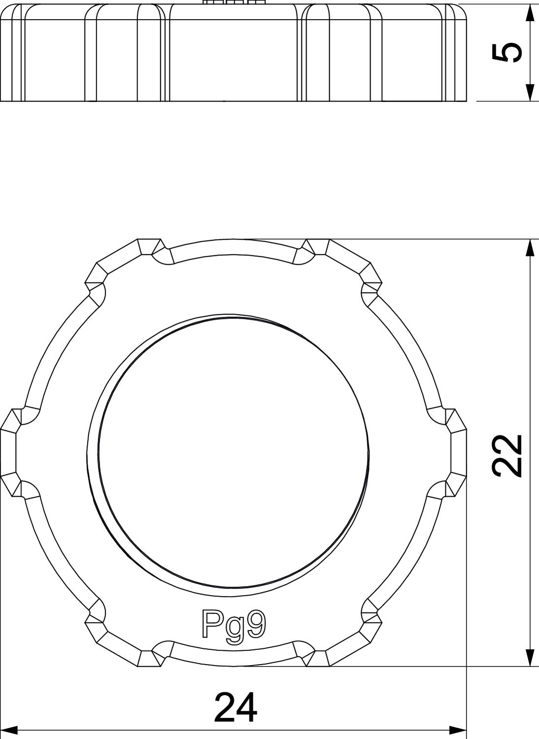 Przeciwnakrętka wg normy DIN 46320 z gwintem PG wg normy DIN 40430.