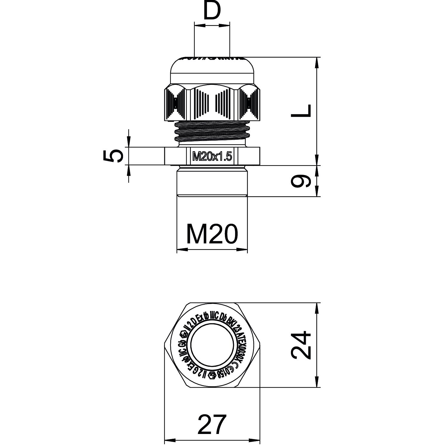 | Nominalny rozmiar gwintu metrycznego/PG: |