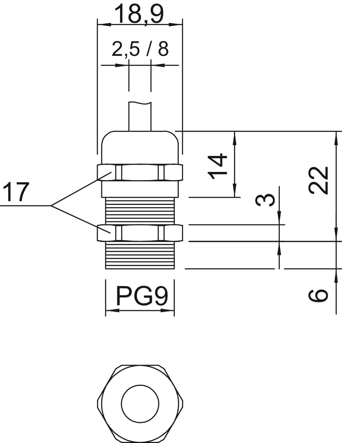 Wytrzymały dławik kablowy z gwintem PG wg DIN 40430 o konstrukcji nakrętki kołpakowej z dużym obszarem uszczelnienia, odciążenie ciągu i zabezpieczenie przed przekręceniem gwarantujące dużą szczelność. Zacisk poliamidowy, pierścień uszczelniający z chloroprenu/kauczuku nitrylowego, z zamocowanym na gwincie pierścieniem O-ring.