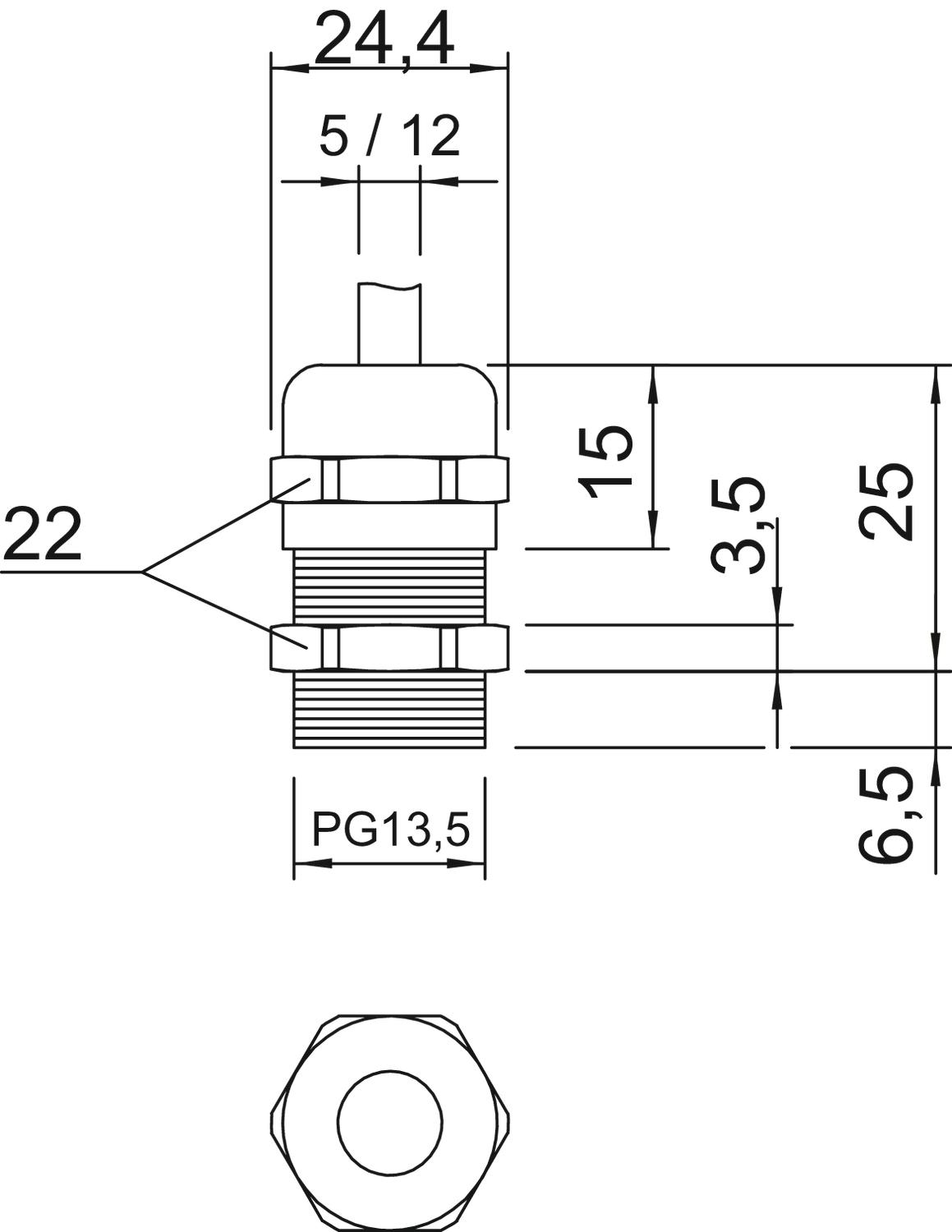 Długość gwintu „standardowa”, w oparciu o normę DIN 46320.