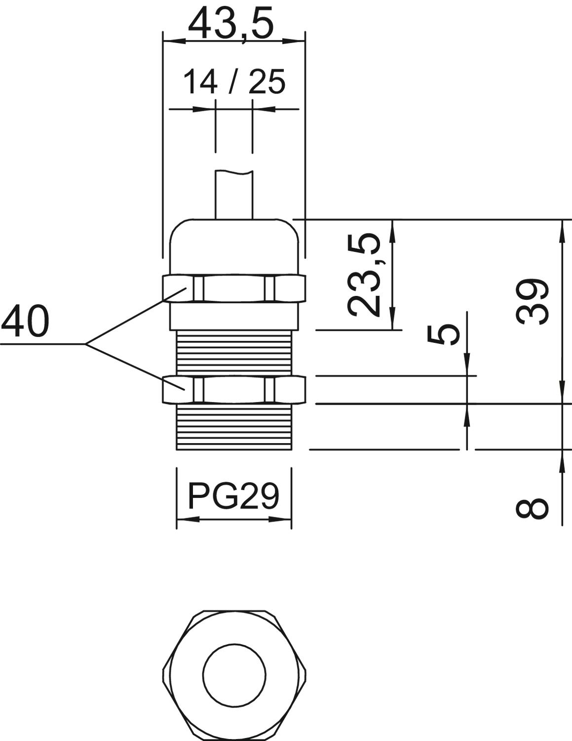 Długość gwintu „standardowa”, w oparciu o normę DIN 46320.