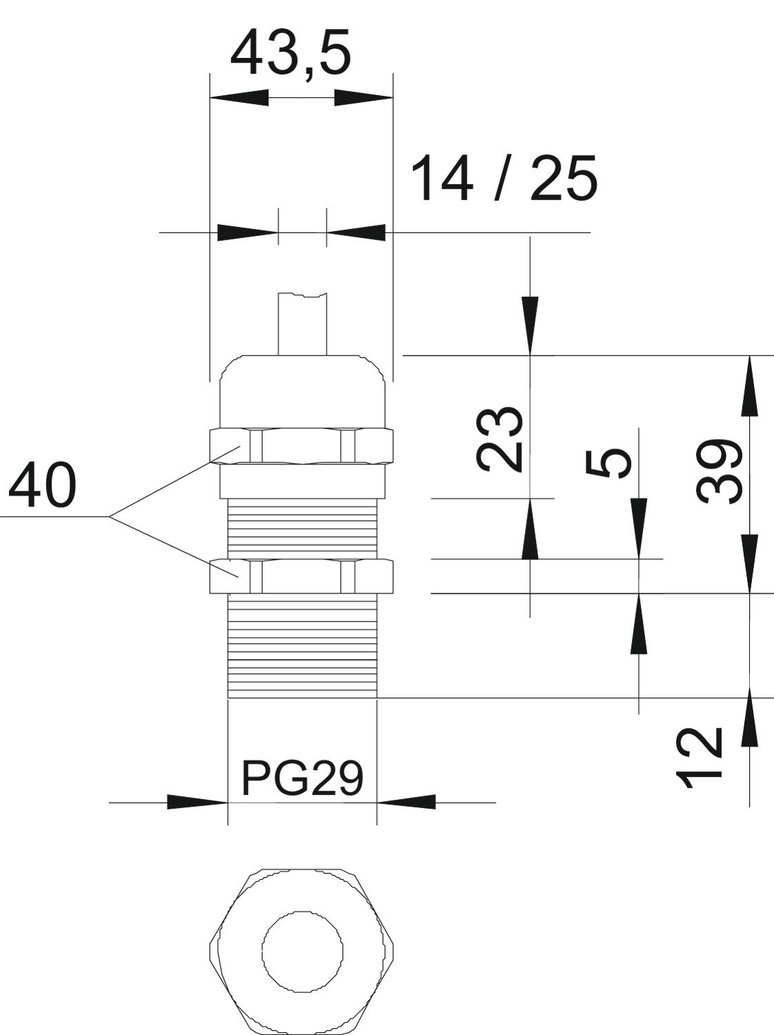 Nominalny rozmiar gwintu metrycznego/PG: