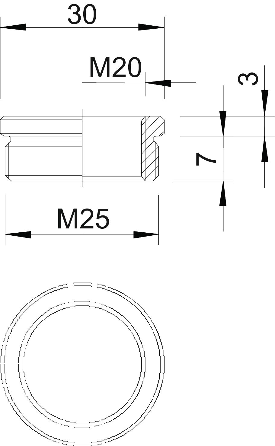 Redukcja (część H) wg założeń DIN 46320, z gwintem metrycznym według DIN EN 60423 wzgl. ISO 68.