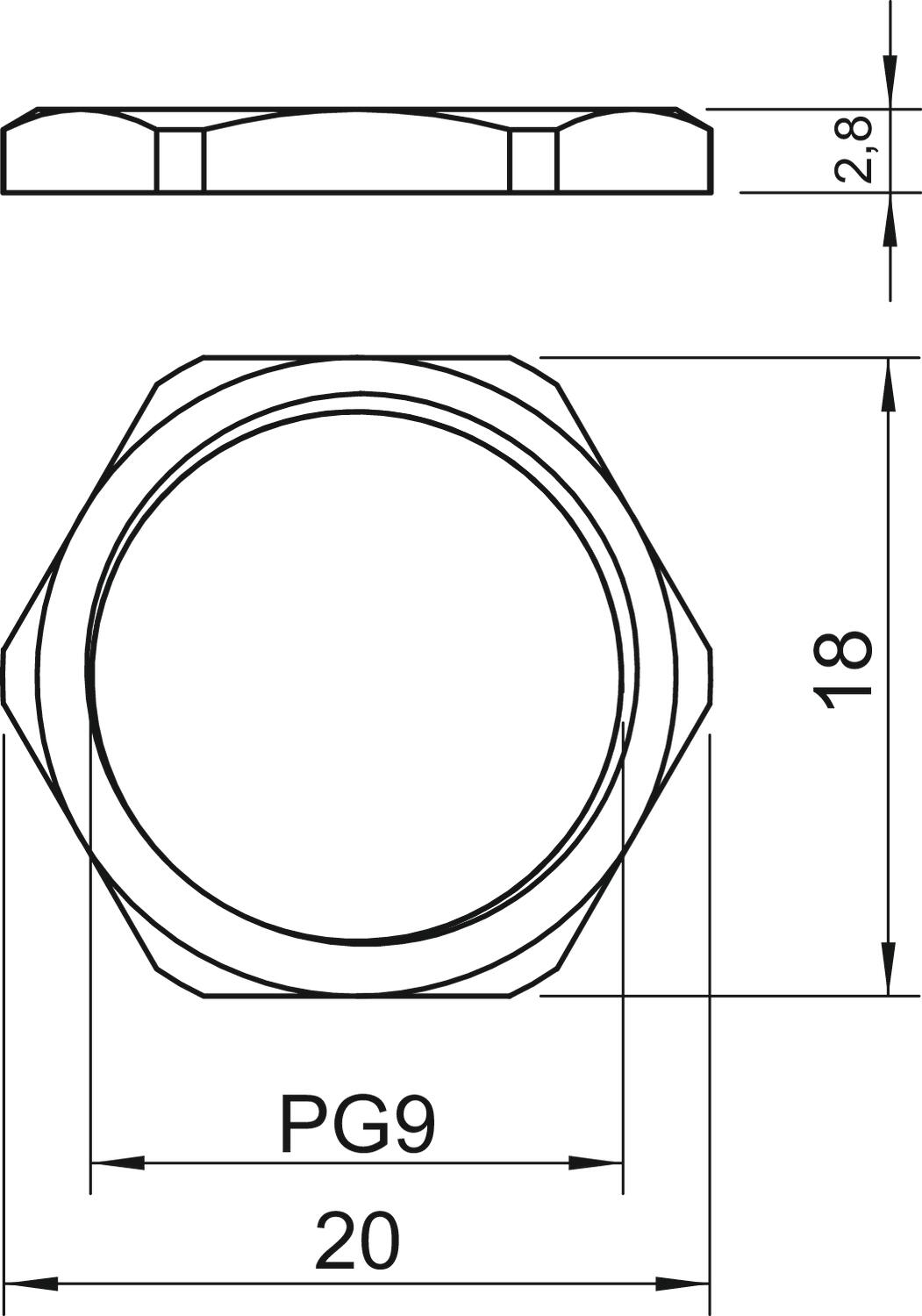 Przeciwnakrętki, część M, według normy DIN 46320 z gwintem PG według DIN 40430.