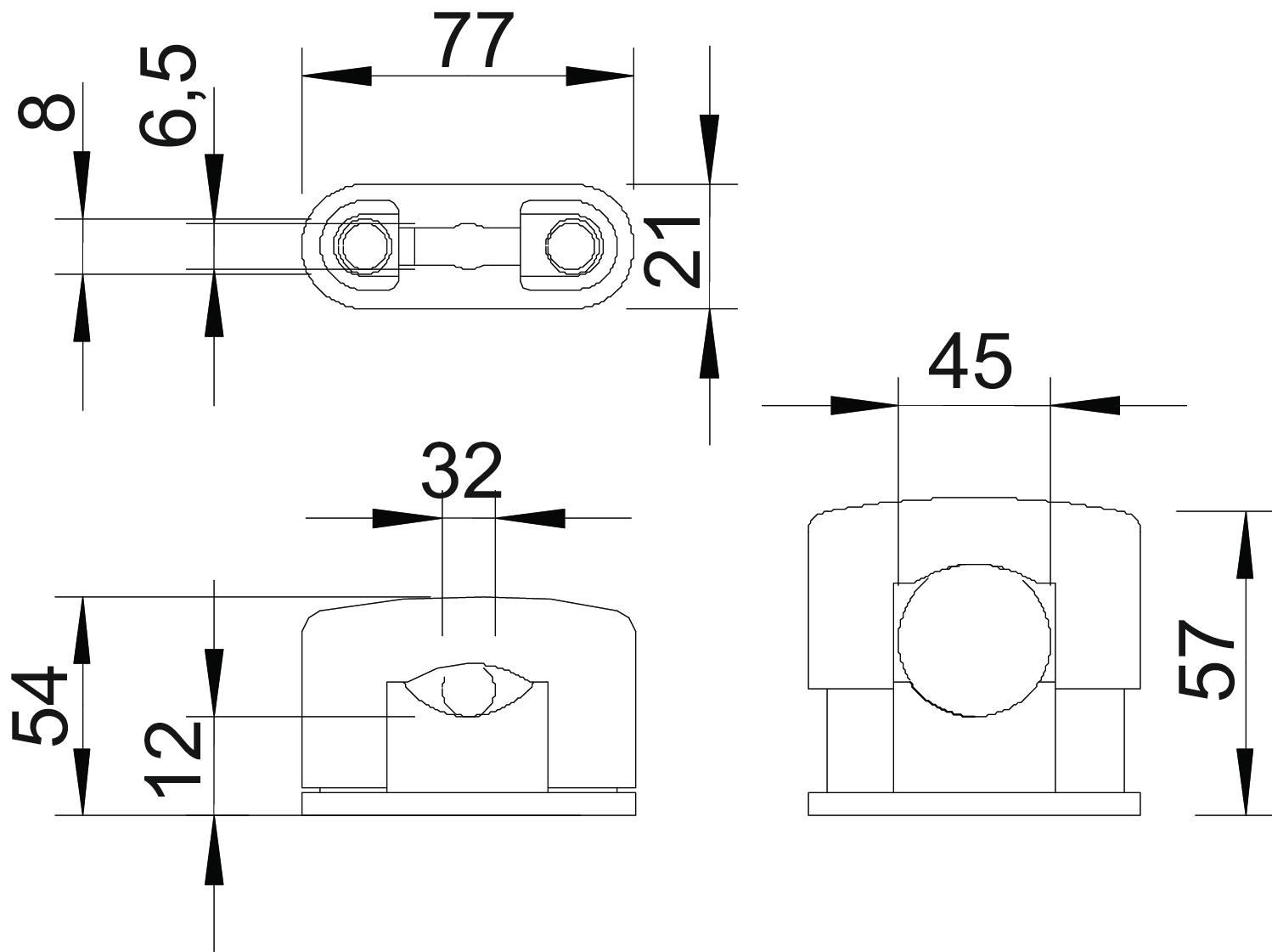 Ze śrubami z tworzywa sztucznego, odporny na korozję, z otworem wzdłużnym do mocowania za pomocą śrub do drewna lub kołków wbijanych 5 mm.