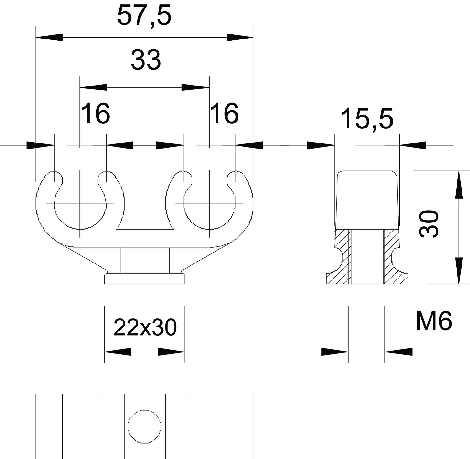 Obejma zaciskowa cokołowa do 2 kabli 15-16mm