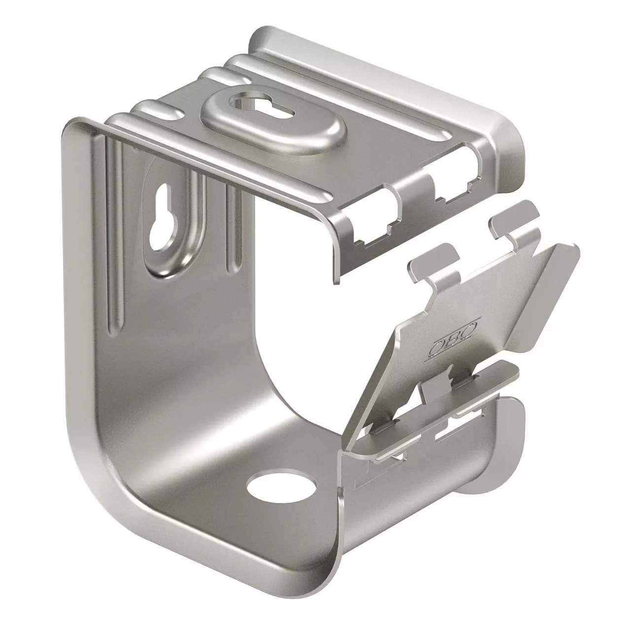 Obejma zbiorcza z metalu, zapewniająca wysoki stopień stabilności mechanicznej, również w przypadku pożaru. Do bezpiecznego montażu nad sufitami podwieszanymi. Dopuszczone również jako rozwiązanie ponadnormatywne podtrzymania funkcji instalacji elektrycznych wg DIN 4102 część 12. Do montażu do stropu i na ścianie. Zamknięcie można otworzyć bez użycia narzędzi.