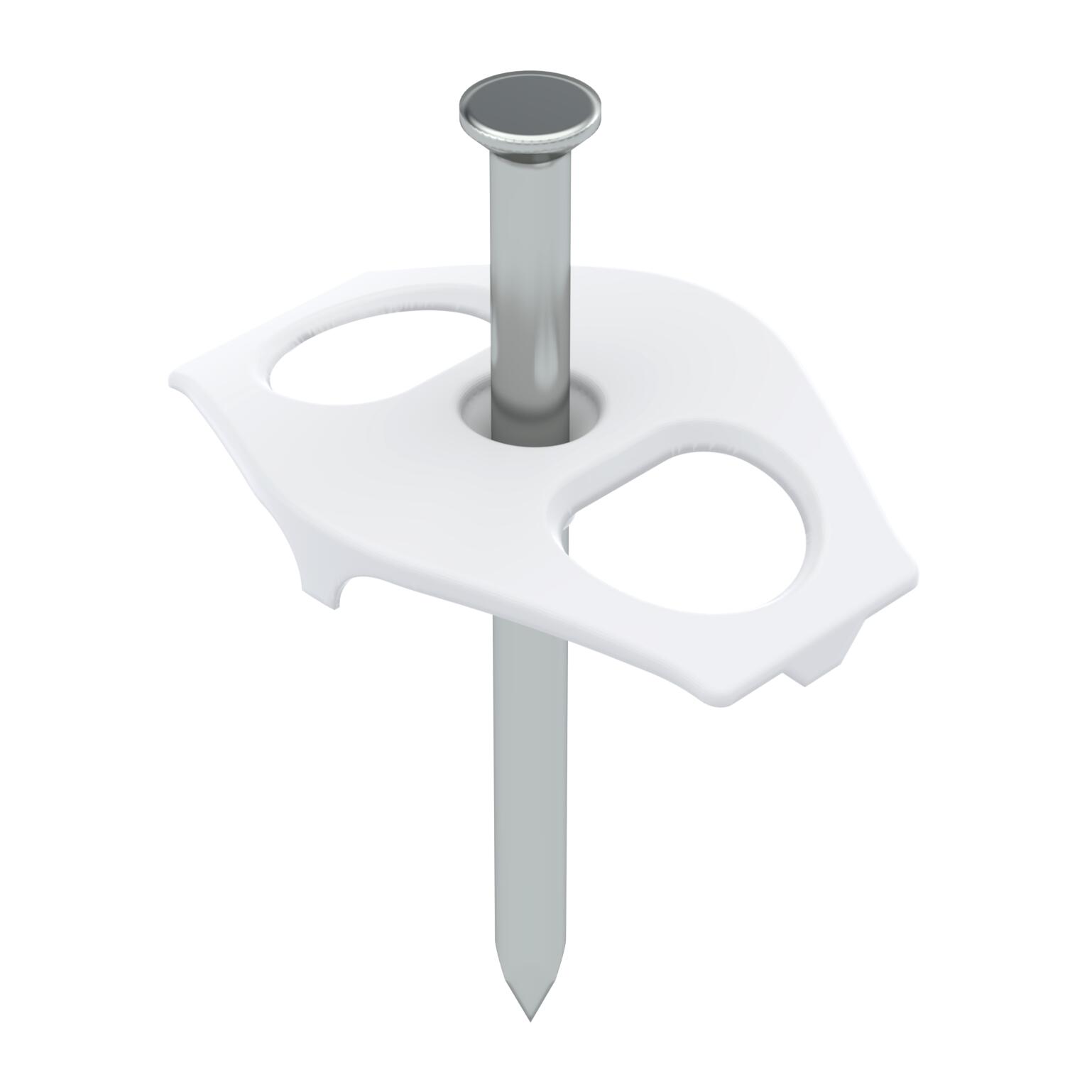 Ze wstępnie zamontowanym gwoździem ocynkowanym, do gwoździ stalowych o śr. 3 lub 3,5 mm, do mocowania przewodów w szczelinach murowanych i na murach, 1 - 2 przewody NYM 3 x 1,5/2,5 mm² lub 1 - 2 przewody NYM 5 x 1,5/2,5 mm².