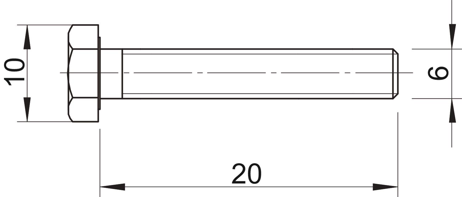 SKS M6x20 ZL Śruba z łbem sześciokątnym
