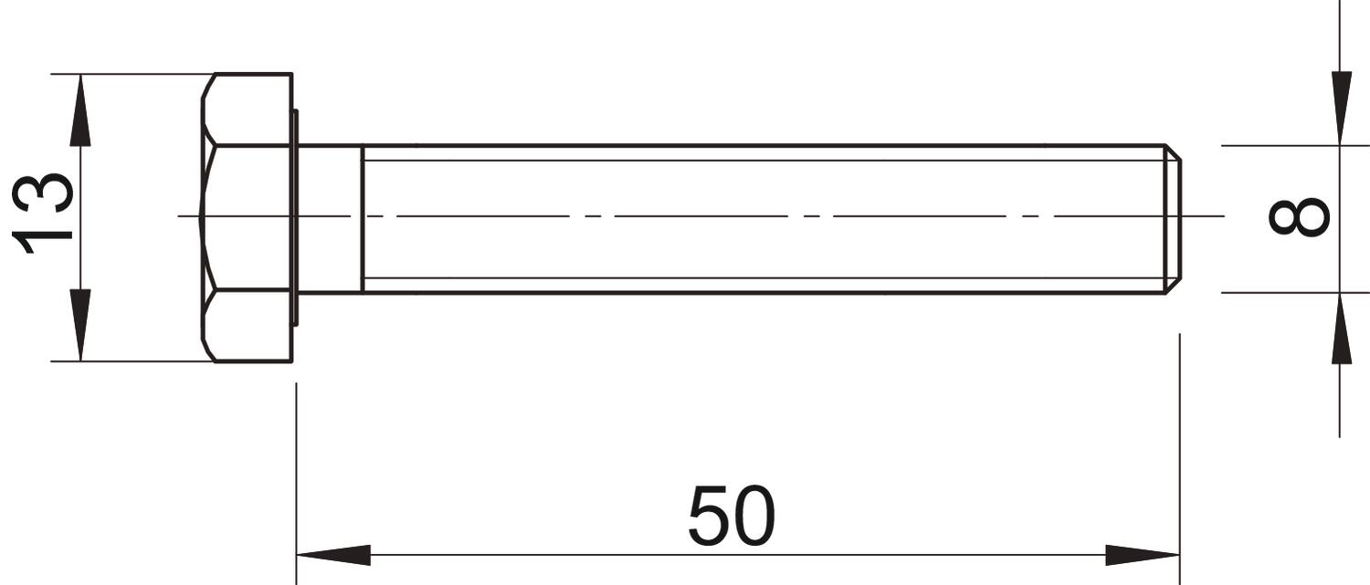 Śruba z łbem sześciokątnym wg DIN 933 z gwintem metrycznym. Klasa wytrzymałości co najmniej 8.8.