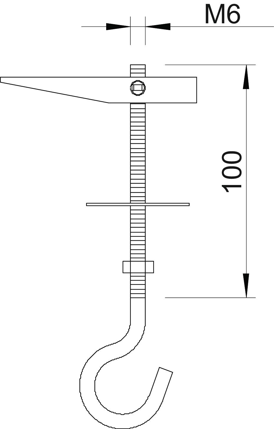 454 M6x100 G Kołek przechylny z hakiem sufitowym