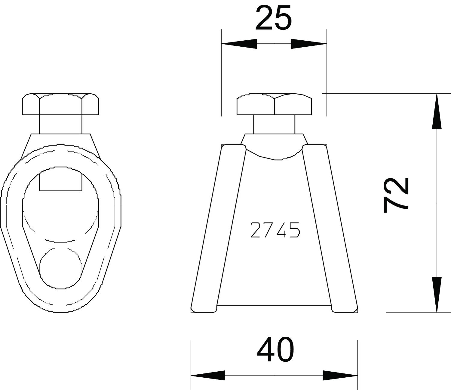 • do połączeń przewodów okrągłych Rd 7-12,5 ze śrubami z łbem sześciokątnym M10 x 25
