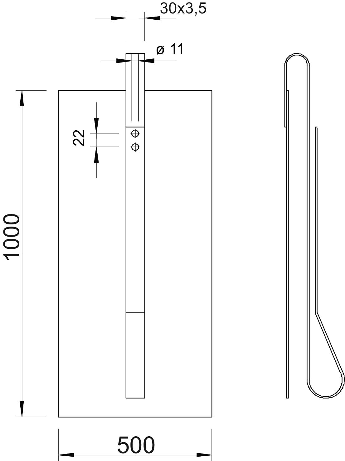 • Z 3 m przyłaczem z płaskownika FL 30 x 3,5