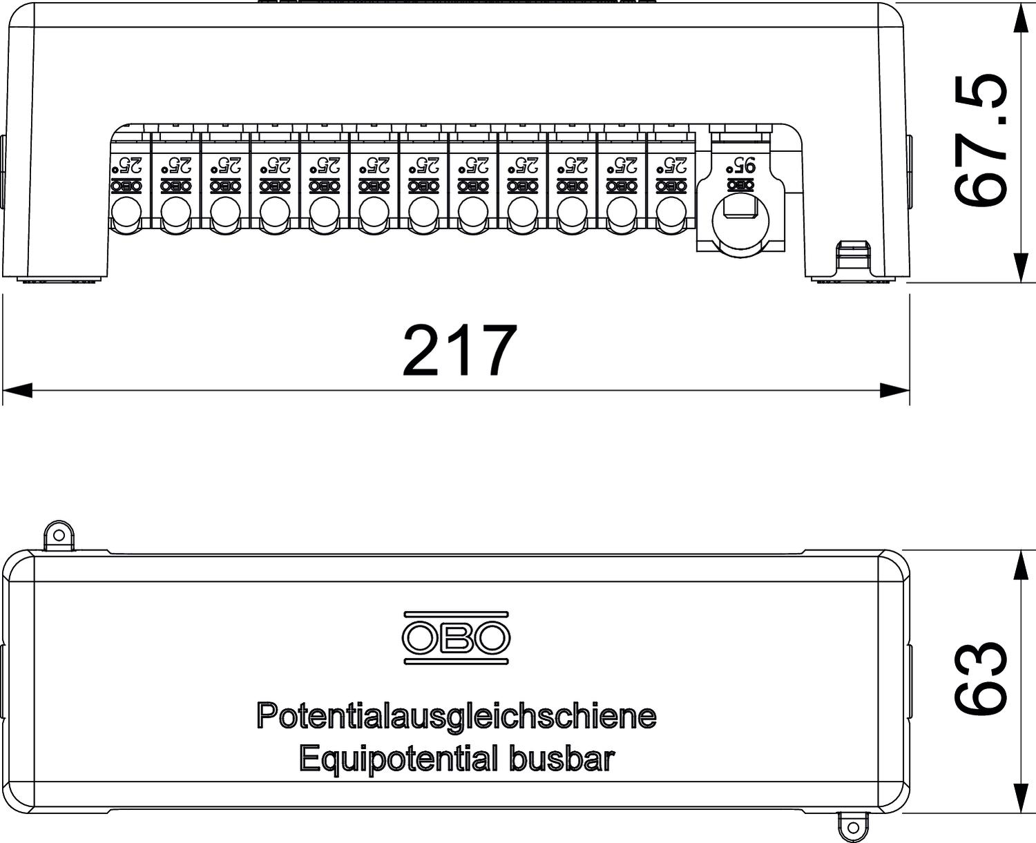 Szyna wyrównania potencjałów do wyrównania potencjałów zgodnie z DIN VDE 0100-410 / -540 i odgromowego wyrównania potencjałów zgodnie z DIN VDE 0185-305