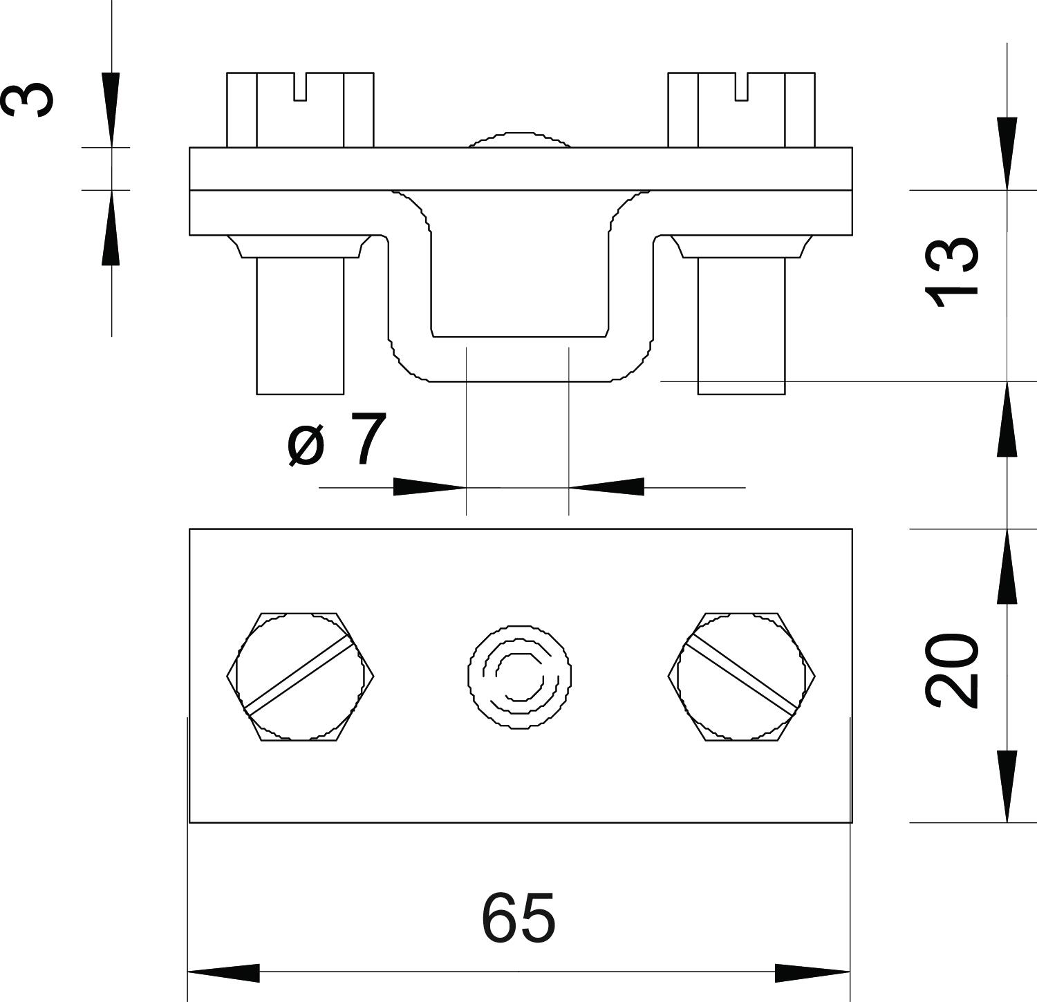 • Z otworem do mocowania Ø 7 mm i 2 śrubami z łbem sześciokątnym M6 x 16 (F)