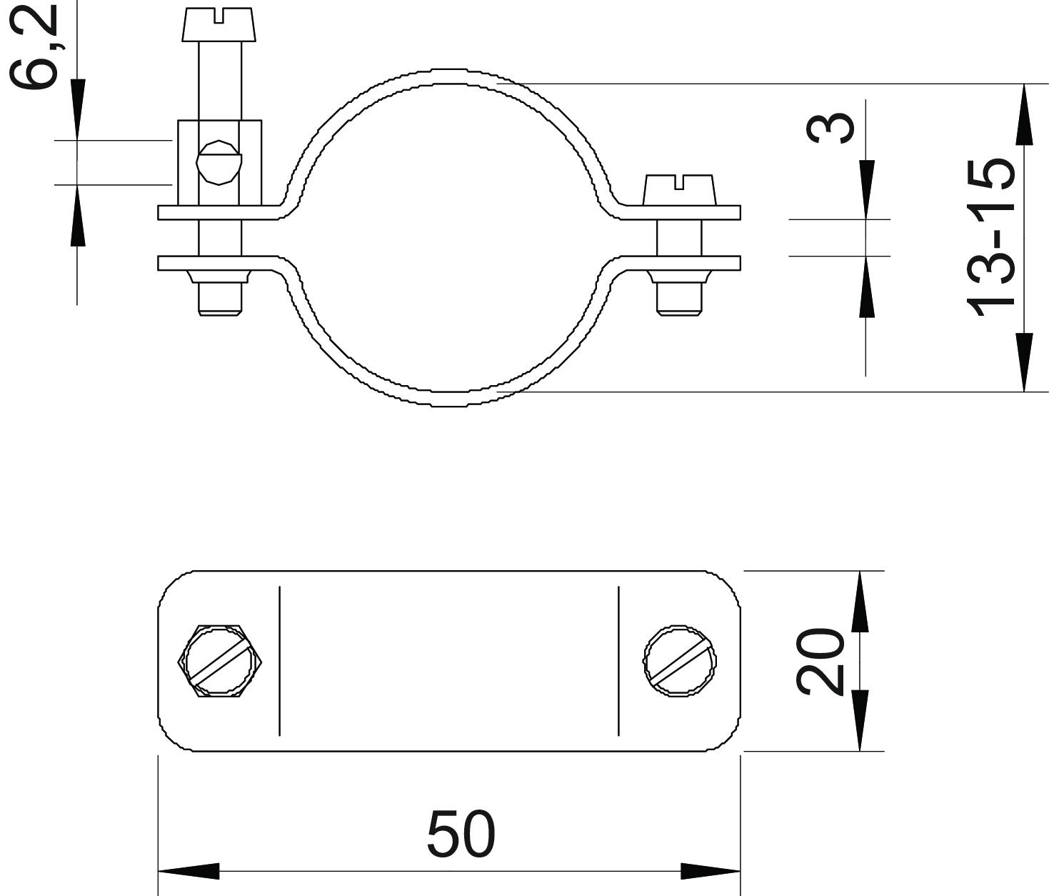 • Górna i dolna część obejmy wykonana z miedzi, niklowana