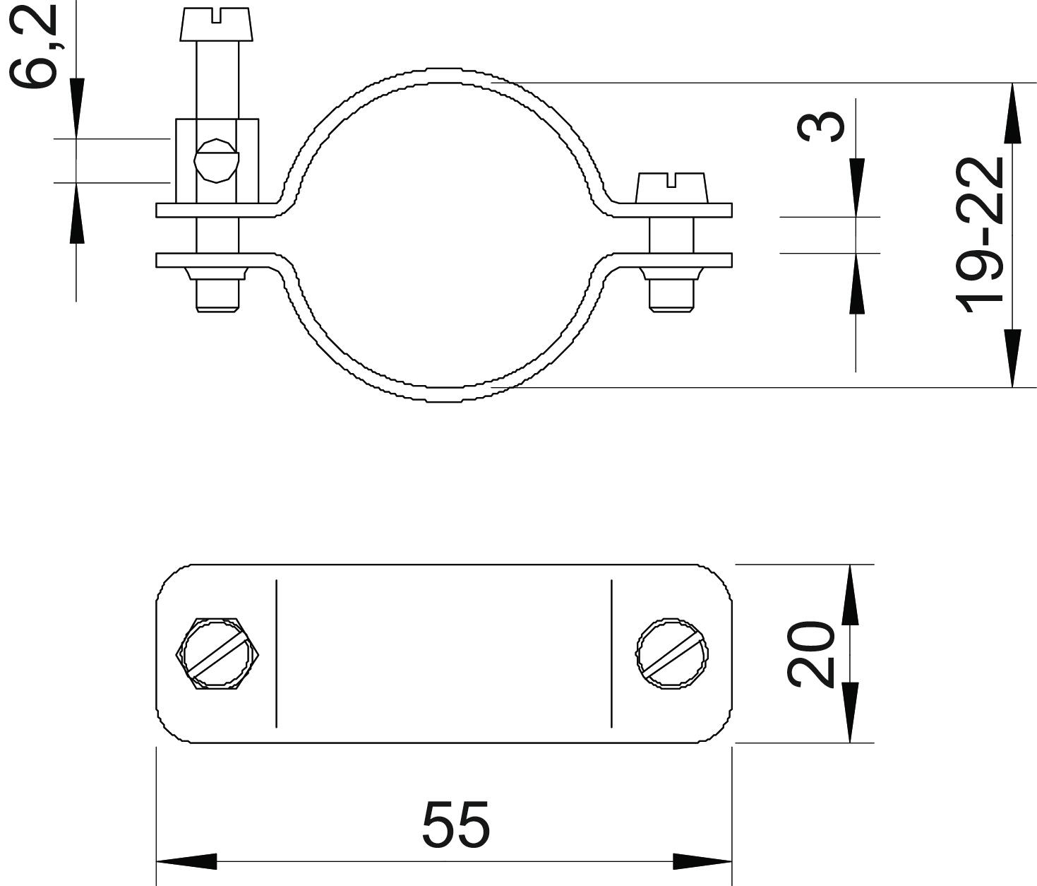 • Górna i dolna część obejmy wykonana z miedzi, niklowana