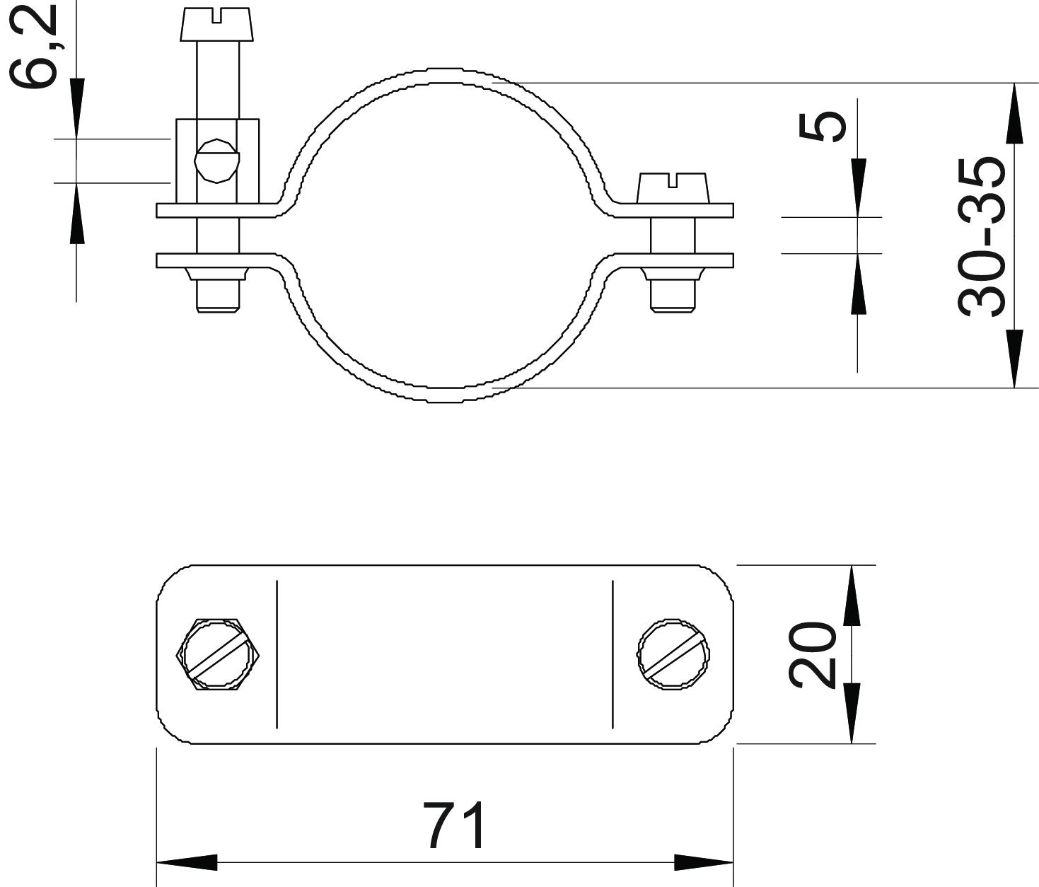 • Górna i dolna część obejmy wykonana z miedzi, niklowana