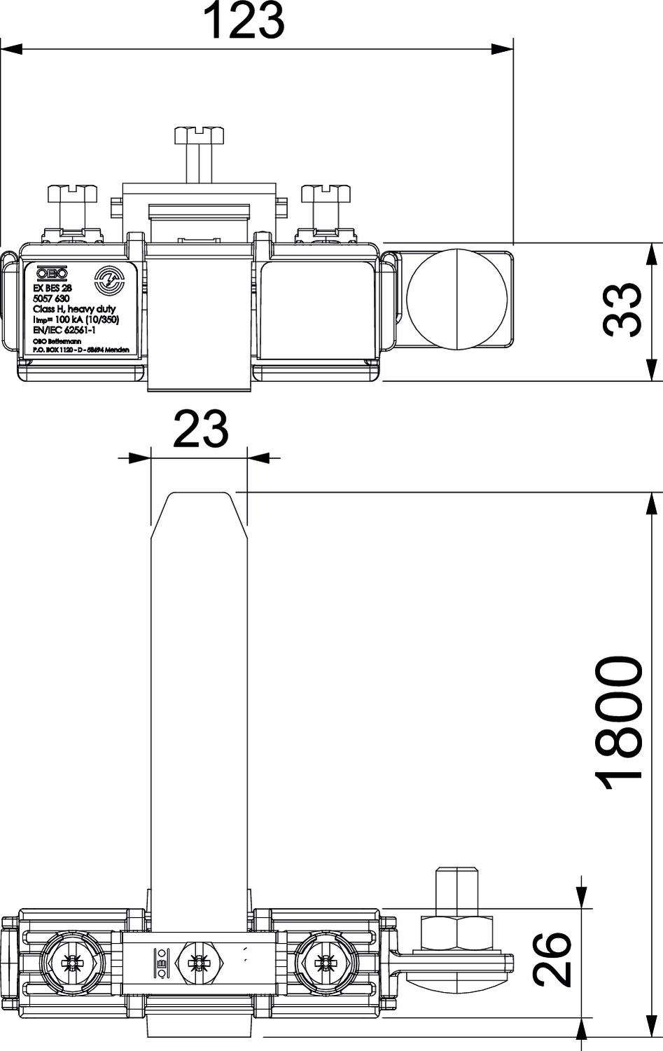 • Obciążalność piorunowa klasa H (100 kA) zgodnie z VDE 0185-561-1 (IEC / EN 62561-1)